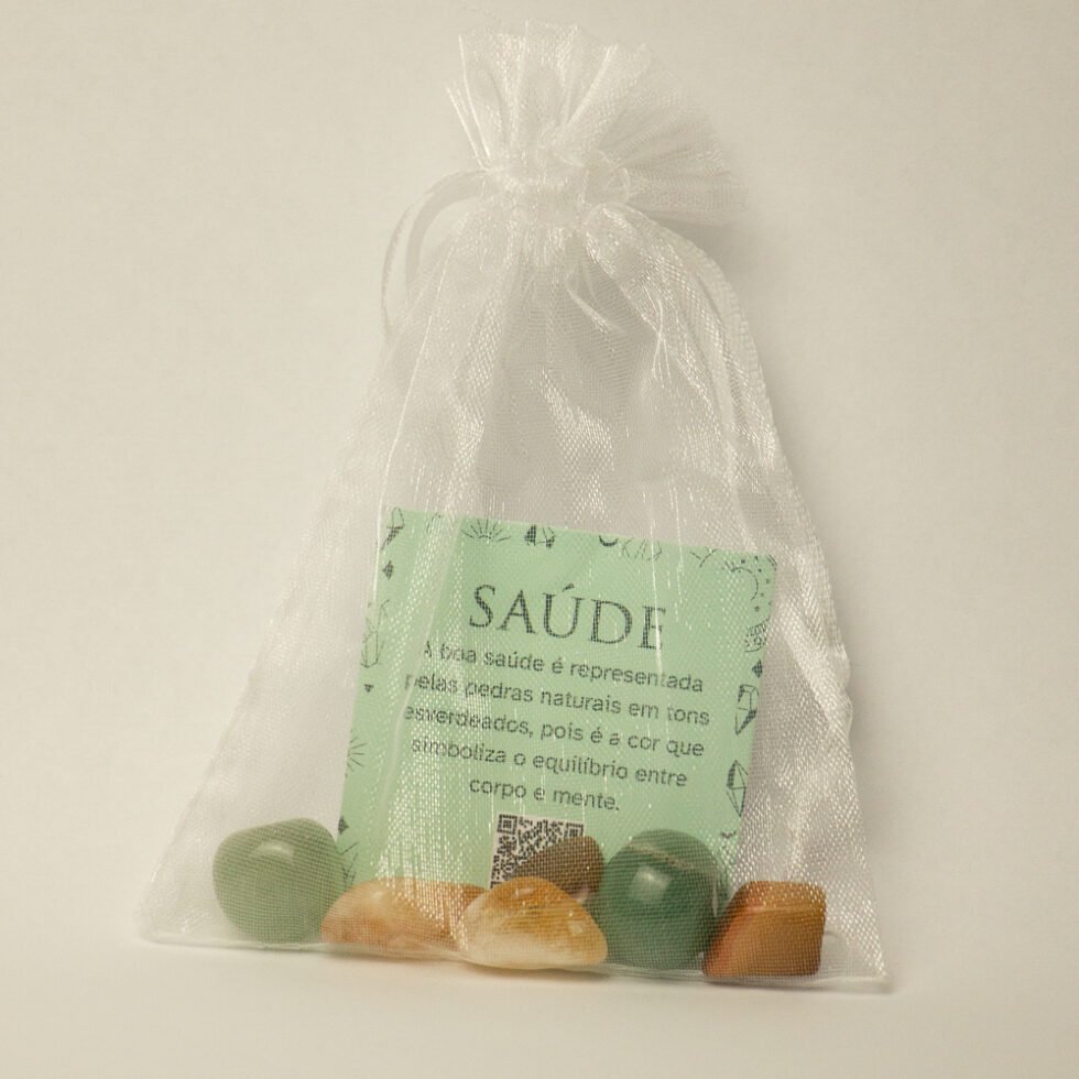 As “Pedras Roladas Saúde” são portadoras de uma energia vital que promove o bem-estar físico e emocional. Com aproximadamente 1,5 cm x 2,0 cm cada, essas pedras foram escolhidas pela sua ligação com a saúde e vitalidade. Cada pedra é única, exibindo variações naturais em formas geométricas e tonalidades.